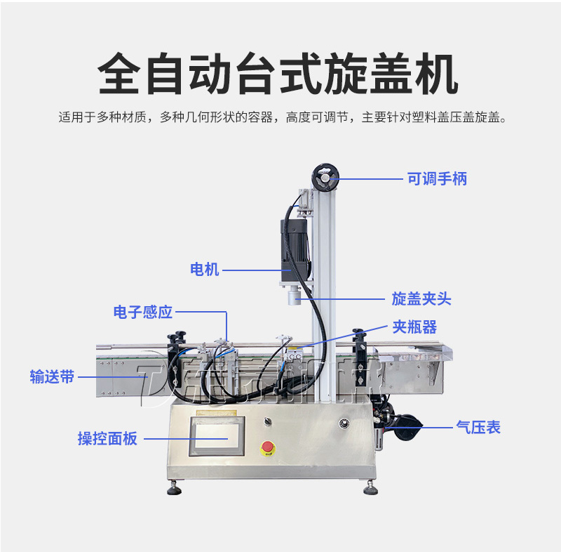 產(chǎn)品說明:生產(chǎn)線根據(jù)灌裝范圍選擇型號,灌裝部分為雙頭下潛式灌裝機,適用于不同物料不同瓶子的灌裝,配備自動壓蓋機和圓瓶貼標(biāo)機,可實現(xiàn)不同蓋子的旋蓋貼標(biāo)工作。 本設(shè)備主要適用于食品、日常化工