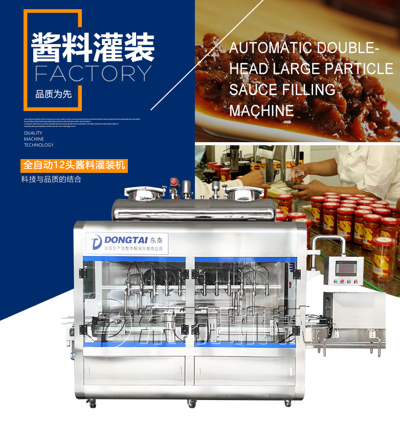 A、顆粒漿狀辣椒醬灌裝機是本東泰機械采用先進灌裝機技術的基礎上,進行改造和創(chuàng)新設計的產(chǎn)品,其結構簡單、精確度高、操作更加簡便。