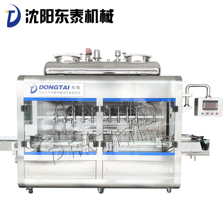 3、 該設(shè)備在設(shè)計上大大縮短了下料斗到灌裝頭的灌裝距離,克服了含油量大的物料(如:含芝麻粒的辣椒油)在灌裝過程中出現(xiàn)的有些瓶油多,有些瓶醬多的灌裝誤差大的缺點。